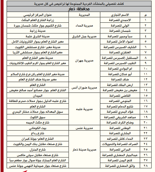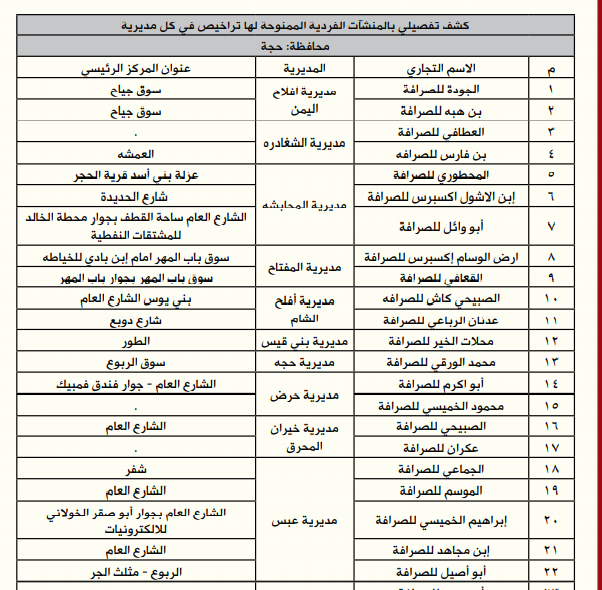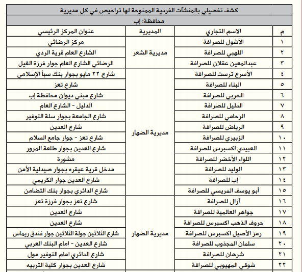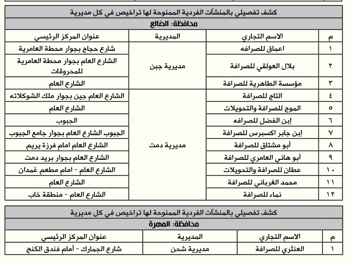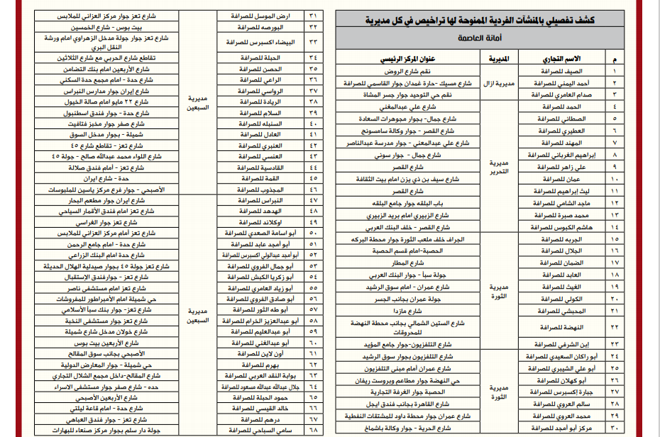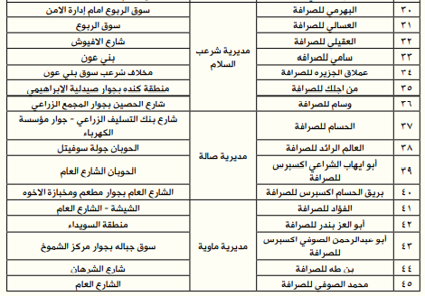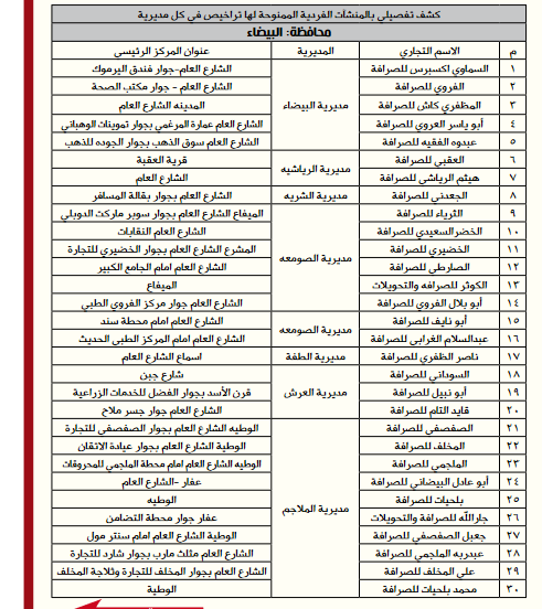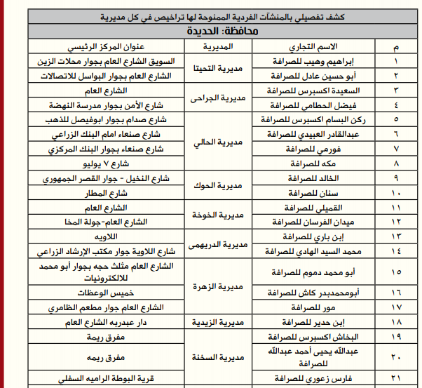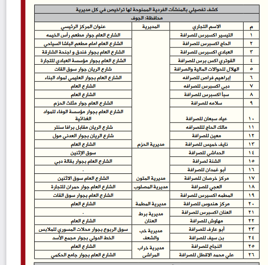 *إليكم أسماء وعناوين الصرافين المرخص لهم من البنك المركزي: