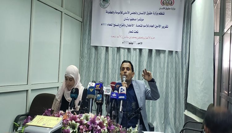 وأشارت إلى أن المؤتمر الصحفي يوضح زيف ما جاء في قرار الأمين العام للأمم المتحدة التي أصبحت شريكة في جرائم العدوان بحق الطفولة في اليمن.