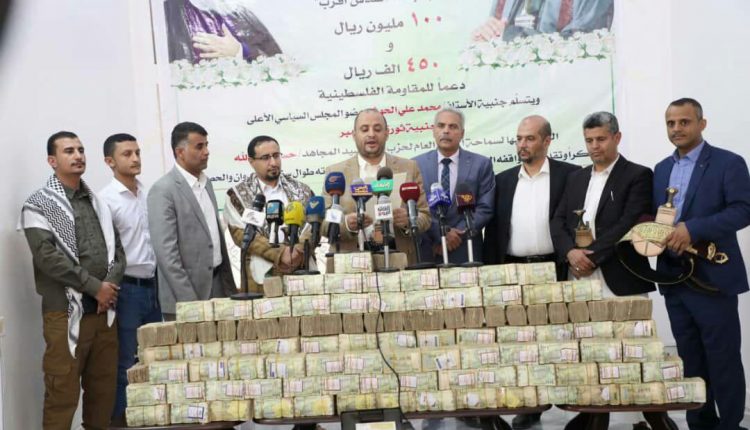 حيث سلّم مدير الإذاعة حمود شرف الدين في المؤتمر، المبلغ المالي لرئيس الملف الفلسطيني لأنصار الله رئيس اللجنة المركزية لجمع تبرعات حملة ” القدس أقرب” حسن الحمران، في حين تسلّمت إذاعة سام الجنبية من اللجنة.