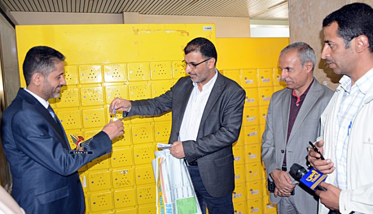 سلم وزير الاتصالات وتقنية المعلومات المهندس مسفر عبدالله النمير السبت، صندوق بريد عضو المجلس السياسي الأعلى محمد علي الحوثي، لأمين عام رئاسة الجمهورية حسن احمد شرف الدين.