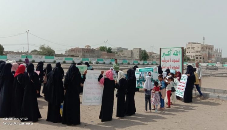 وقفة لطالبات مركزي الزهراء الصيفيين بالحديدة للتنديد بجرائم العدوان