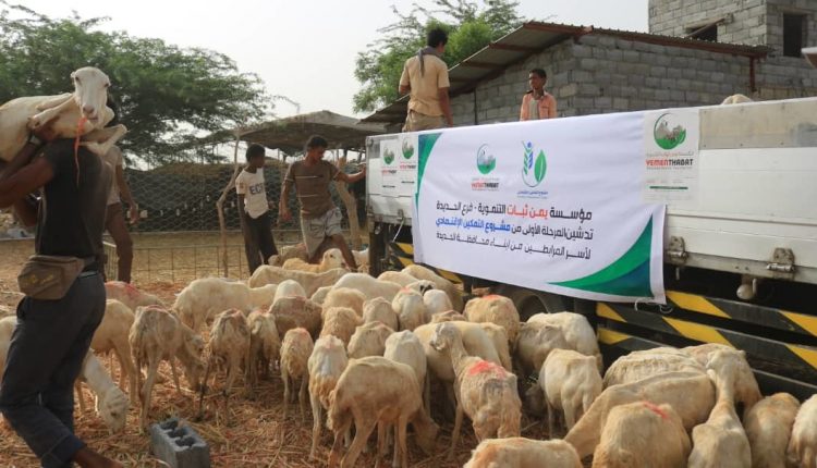 دشنت مؤسسة يمن ثبات التنموية بمحافظة الحديدة اليوم المرحلة الأولى من مشروع التمكين الإقتصادي بتوزيع عدد من الأغنام لأسر المرابطين بالجبهات من أبناء المحافظة