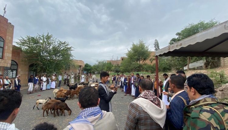 سير أبناء مديرية العدين بمحافظة إب، الأربعاء، اليوم قافلة عيدية للجبهات احتوت على رؤوس الإبقاء والاغنام.