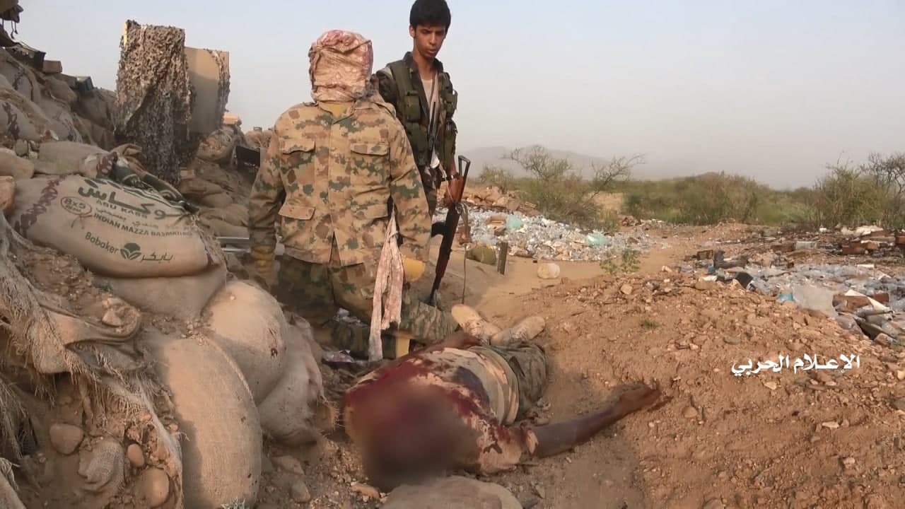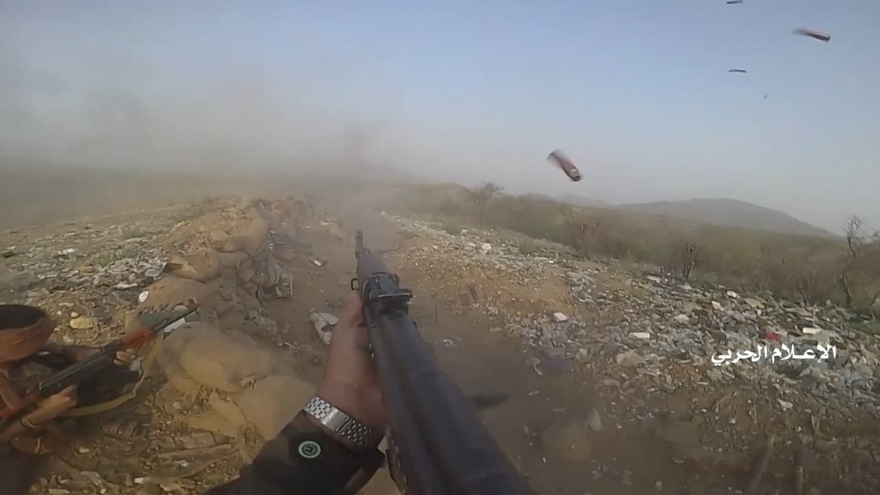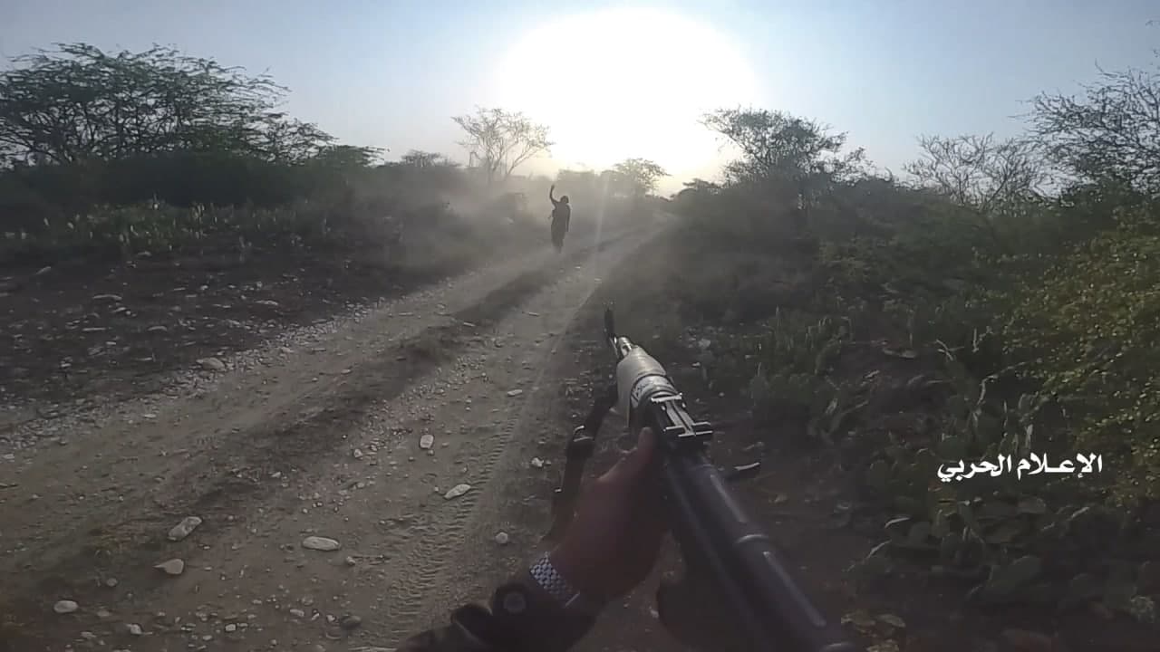 وزع الإعلام الحربي اليمني، الخميس، مشاهد نوعية لعملية هجومية قبالة جبل الدود في محور جيزان تكللت بالسيطرة على مواقع عدة ومقتل وإصابة وأسر مرتزقة سودانيين.