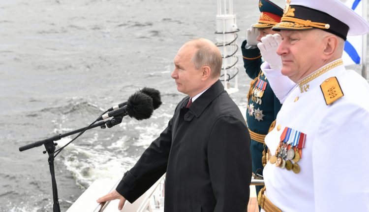وأشار بوتين إلى أن بلاده تحتل مكانها الصحيح بين القوى البحرية الرائدة وأصبحت تمتلك السفن القوية في منطقة المحيط والغواصات الصاروخية التي تعمل بالطاقة النووية لافتاً إلى اكتساب روسيا طيراناً بحرياً فعالاً بعيد المدى وقصير المدى.