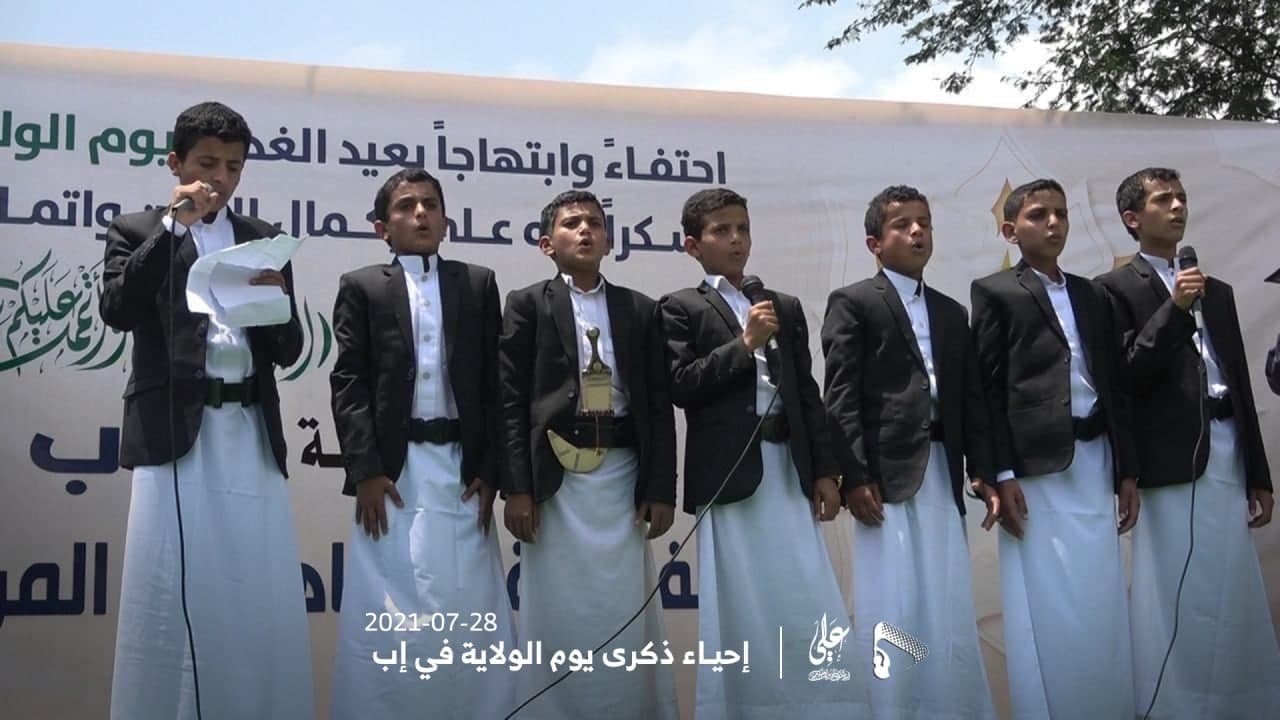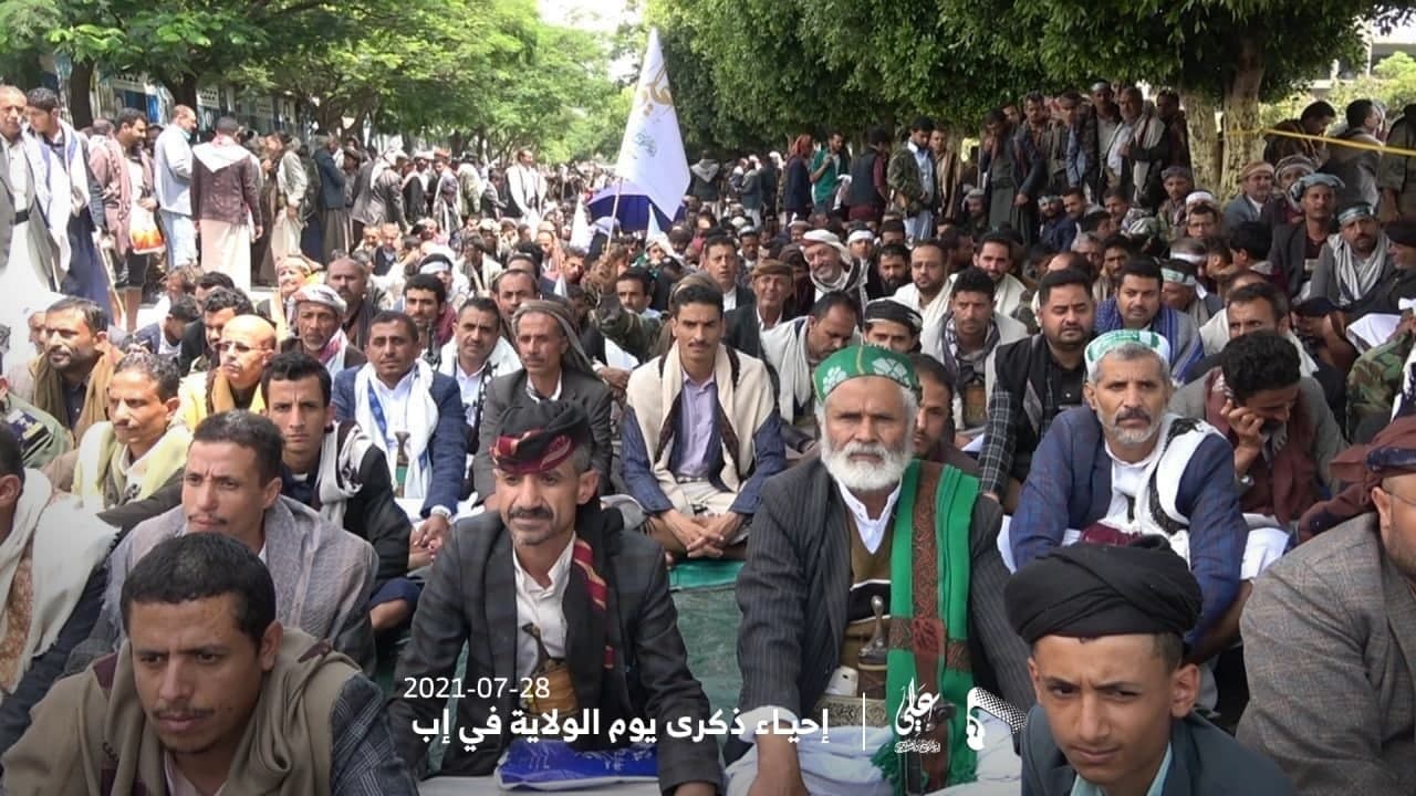 أقيمت بمدينة إب احتفالية مركزية لمديريات المحافظة، إحياءا لذكرى يوم الولاية بحضور رسمي وشعبي تحت شعار “الُيَوَمٌ اكِملُتْ لُكِمٌ دِيَنَكِمٌ وَاتْمٌمٌت ْعلُيَكِمٌ نَعمٌتْيَ ورَضُيَتْ لُكِمٌ الُاسِلُامٌ دِيَنَا”.