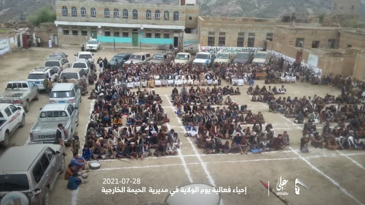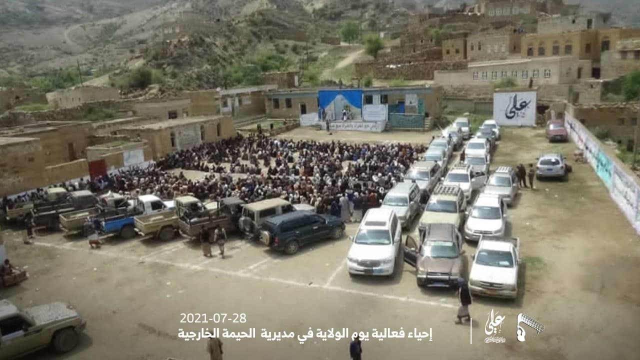 وشهدت مديرية الحيمة الخارجية حفل جماهيري في ساحة بني منصور بحضور مستشار رئيس المجلس السياسي الأعلى العلامة محمد مفتاح وعضو مجلس الشورى يحيى غوبر ووكيل المحافظة عبدالمغني داوود.