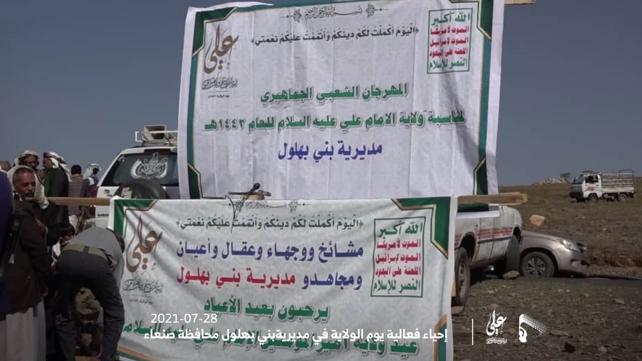 وأحيت مديرية بلاد بني مطر ذكرى ولاية الإمام علي بفعالية، خطابية بحضور وكيلي المحافظة أحمد الصماط وصالح المنتصر ومدير المالية بديوان المحافظة محمد العميسي ومدير المديرية عبدالقادر المحضار.