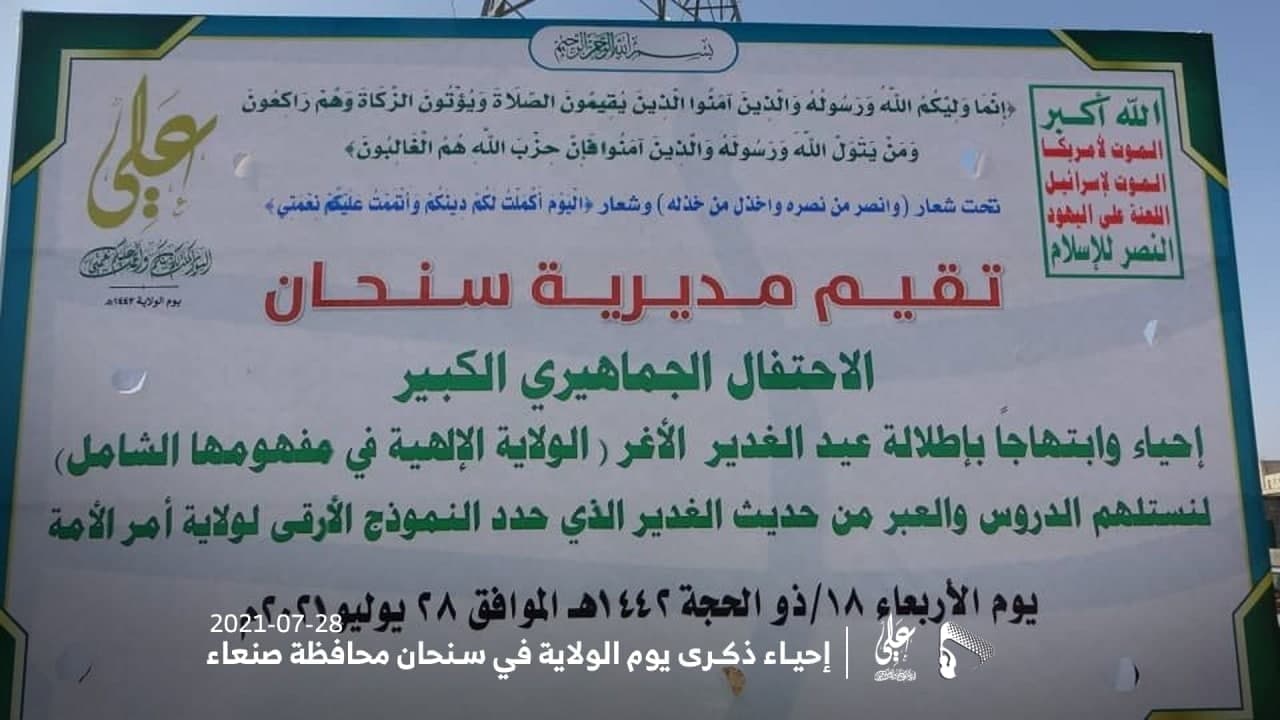 وأشارت الكلمات التي ألقيت في الفعالية إلى ابتهاج اليمنيين بإحياء يوم الولاية، لتجديد تمسكهم بنهج الإمام علي وحبهم وولائهم له.