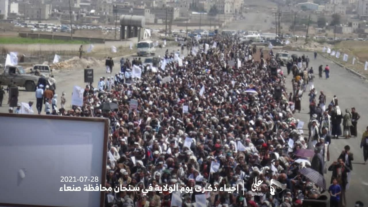 شهدت ساحات الإحتفالات بمحافظة صنعاء، فعاليات جماهيرية حاشدة، إحتفاءً بذكرى يوم الولاية.