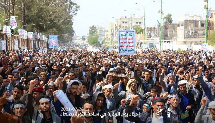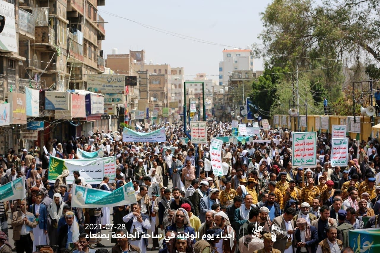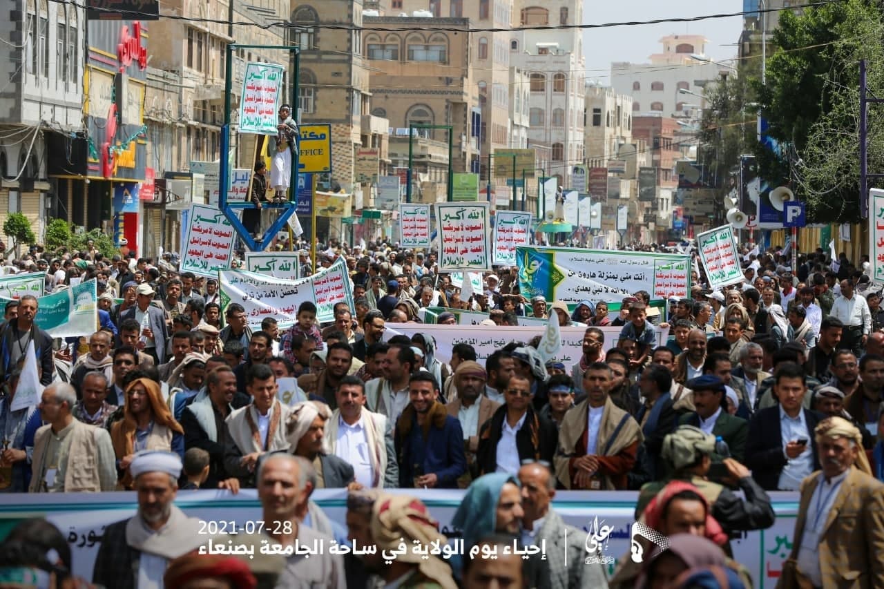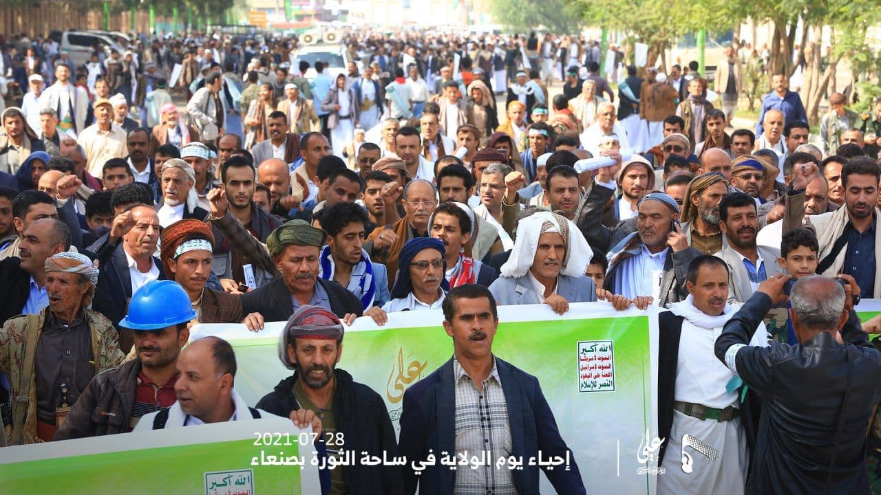 شهدت العاصمة صنعاء، مهرجانات ومسيرات جماهيرية كبرى حاشدة إحتفاءً بيوم الولاية للعام 1442هـ تحت شعار ” اليوم أكملت لكم دينكم وأتممت عليكم نعمتي “.