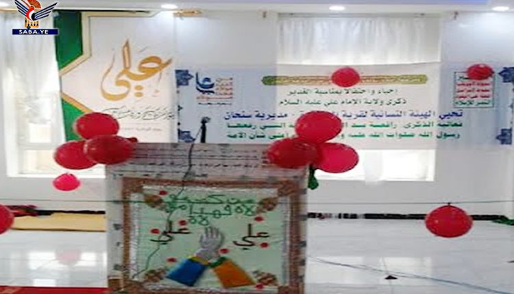 نظمت الهيئة النسائية الثقافية في المحاقرة بمديرية سنحان محافظة صنعاء، الجمعة، فعالية خطابية احتفاء بذكرى يوم الولاية.