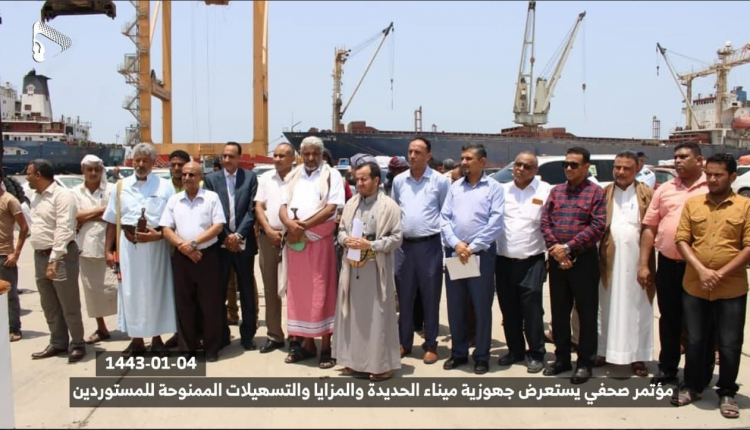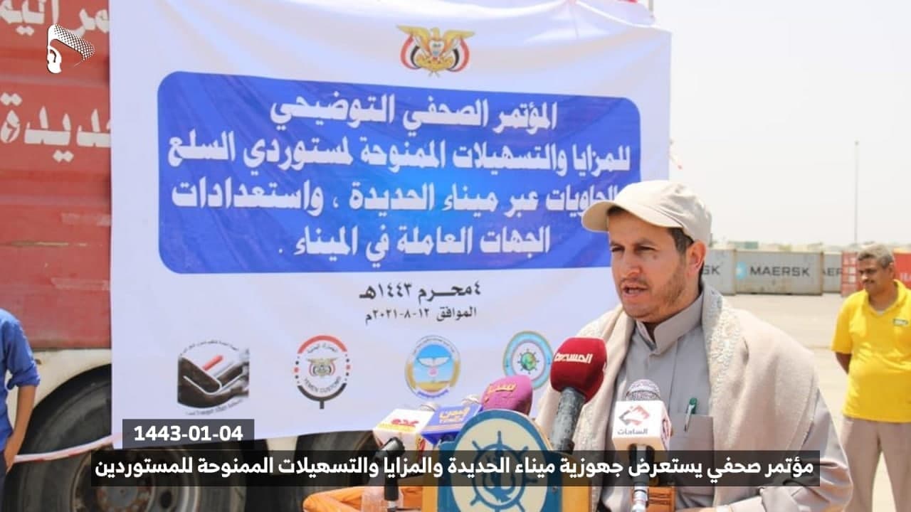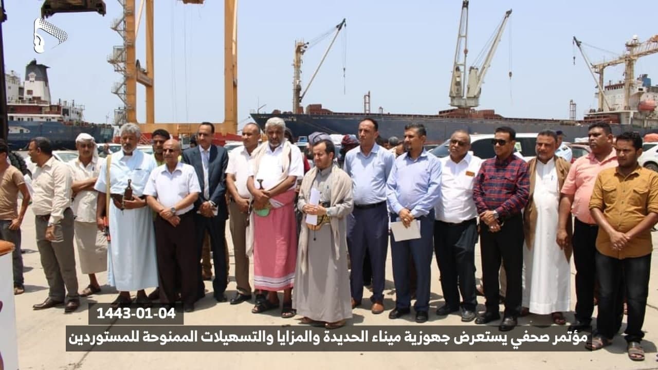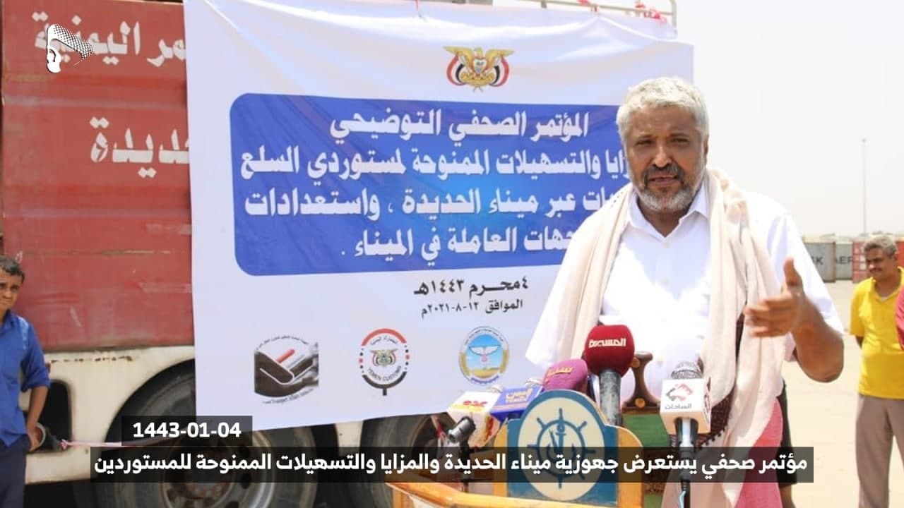 جاء ذلك في مؤتمر صحفي توضيحي عقد بميناء الحديدة، الخميس، حول المزايا والتسهيلات الممنوحة لمستوردي السلع بالحاويات عبر ميناء الحديدة، واستعدادات مؤسسة موانئ البحر الأحمر اليمنية والجهات العاملة في الميناء، حيث استعرض محافظ الحديدة، محمد عياش قحيم، ونائب وزير الصناعة والتجارة، محمد الهاشمي، خلال المؤتمر، نتائج مخرجات اللقاء التشاوري للقطاعات الاقتصادية والتجارية بشأن اتخاذ المجلس السياسي الأعلى التدابير اللازمة لتأمين وصول وتوزيع السلع والمنتجات المستوردة الغذائية والدوائية، والاحتياجات الأساسية في إطار الحقوق المكفولة والمنصوص عليها في القوانين والمعاهدات الدولية كمعالجة طارئة.