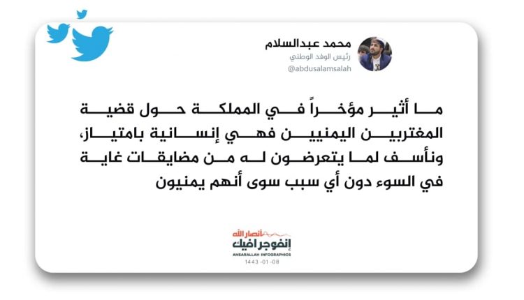 علق رئيس الوفد الوطني المفاوض محمد عبدالسلام على الانتهاكات التي يتعرض لها المغتربين اليمنيين في السعودية مؤخراً.