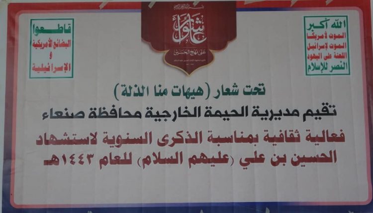 نظمت في مديرية الحيمة الخارجية محافظة صنعاء، الأربعاء، فعالية خطابية احياء لذكرى استشهاد الإمام الحسين عليه السلام.