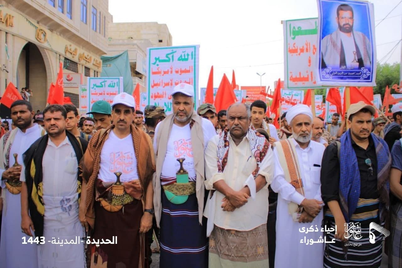 وفي المسيرة أشار المحافظ محمد عياش قحيم إلى أن خروج أبناء تهامه في كافة المربعات يمثل إعلان حي لتجديد العهد للسير على خطى ونهج الإمام الحسين عليه السلام.