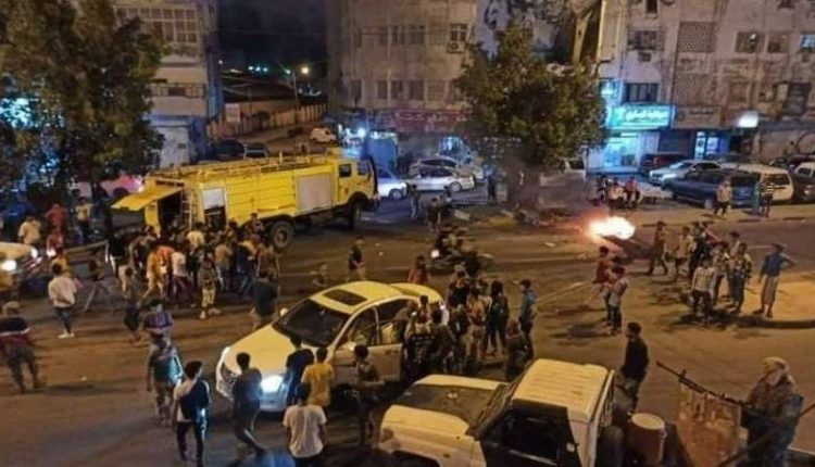 وذكرت مصادر محلية أن محتجين أغلقوا شارع المعلا الرئيسي مساء الإثنين، احتجاجا على المماطلة بتسليم قتلة شاب، قتل بطريقة بشعة على يد مجموعة شباب قبل عدة أيام في حافة حسين بمديرية صيرة.