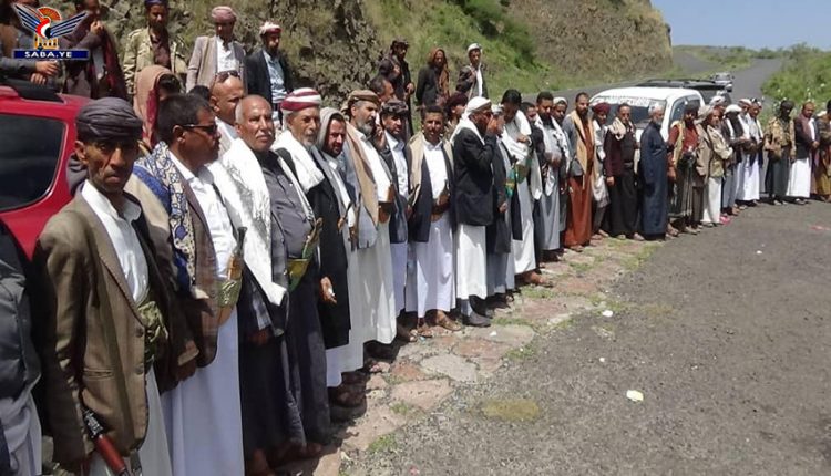 نظم أبناء مديرية المخادر في إب اليوم وقفة احتجاجية تنديداً باستمرار العدوان والحصار ورفع تحالف العدوان سعر التعرفة الجمركية.