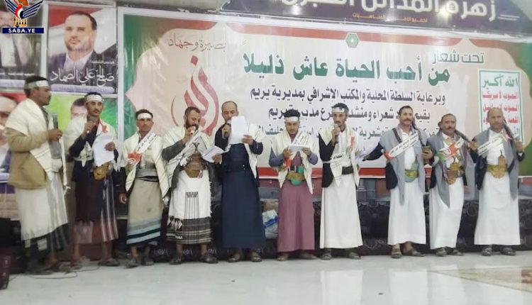 وفي الفعالية التي حضرها عضو مجلس الشورى محمد التويتي وقيادات السلطة المحلية والإشرافية والشخصيات الاجتماعية والقيادات الأمنية والتربوية وأبناء مديريات المربع الشمالي (يريم ، الرضمة ،السدة ، النادرة)، ألقى كوكبة من الشعراء قصائد شعرية تناولت سيرة الإمام زيد ومناقبه وصفاته