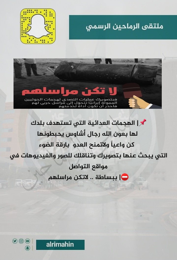 وتوعد الأمن السعودي المواطنين بالمملكة بالعقاب والسجن والغرامة في حالة نشر أي فيديوهات توثق القصف الذي يستهدف الأراضي السعودية ولحظة وصول الصواريخ الباليستية للمواقع المستهدفة.