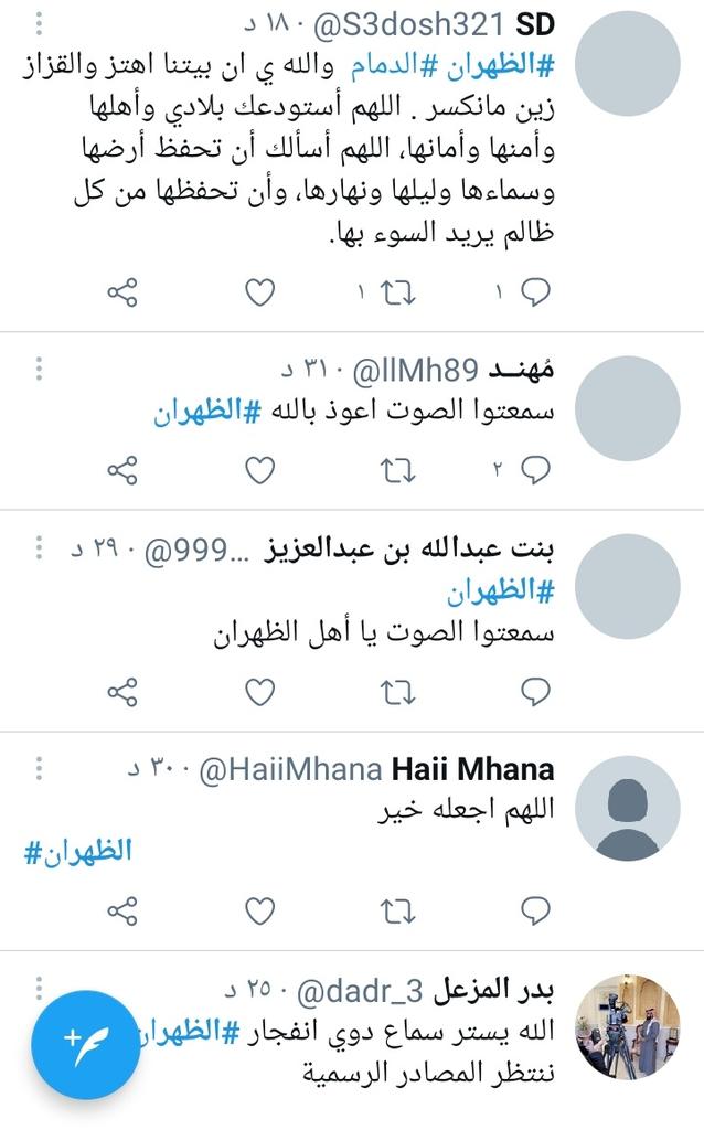 وتداول ناشطون سعوديون على مواقع التواصل الإجتماعي مقاطع فيديو توثق لحظة وصول الصواريخ الباليستية على أهداف بمدينة الدمام.