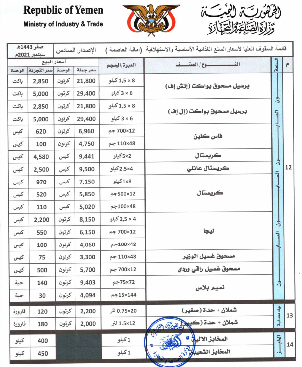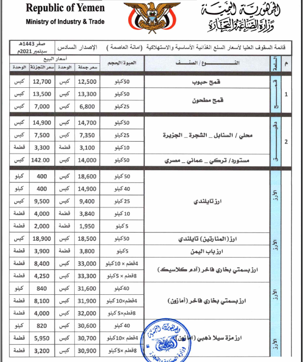 بعد إقرارها رسمياً.. تعرف على “قائمة الأسعار الجديدة” للقمح والدقيق ومختلف أنواع المواد الغذائية في العاصمة صنعاء «صور»