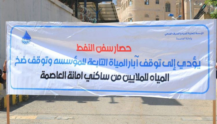 وأشار موظفو المؤسسة في وقفة احتجاجية، نظمتها المؤسسة الإثنين، أمام مكتب الأمم المتحدة بصنعاء بالتعاون مع شركة النفط اليمنية، إلى أن احتجاز سفن الوقود سيؤدي إلى توقف ضخ ما يقارب مليونا و10 آلاف متر مكعب من المياه من 70 بئراً بأمانة العاصمة فقط.