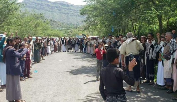 وقفة قبلية لأبناء مديرية التعزية تندد بقصف العدوان مطار تعز