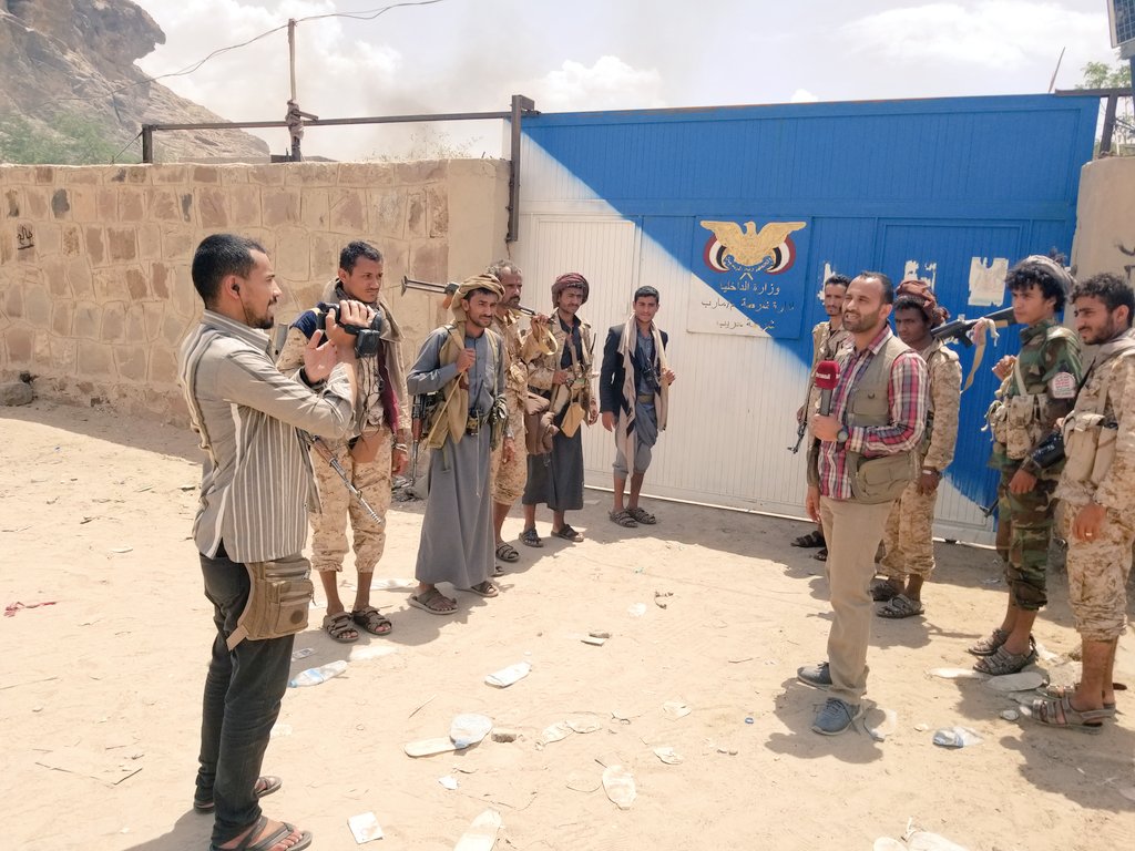 من جهته، نشر مراسل قناة المسيرة يحيى الشامي، على حسابه بموقع تويتر، صورة له مع أبطال الجيش واللجان الشعبية من أمام بوابة مبنى إدارة أمن حريب بعد تحرير مركز المديرية. وكتب يحيى الشامي في تغريدته: “حريب مارب التحرير فصل من فصول الثورة “.
