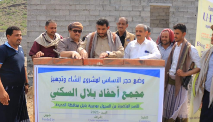 وضع وكيل محافظة الحديدة المساعد لشؤون المربع الشرقي عامر مثنى ومدير فرع المجلس الأعلى لإدارة وتنسيق الشؤون الإنسانية والتعاون الدولي جابر الرازحي، الجمعة، حجر الأساس لمشروع مجمع أحفاد بلال السكني بمديرية باجل.
