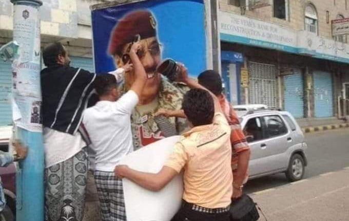 وفي التظاهرة التي جابت شوارع المدينة هتف المتظاهرون بعدة شعارات منها “لا تحالف بعد اليوم” التقطت عدسة ناشطين صوراً لمتظاهرين أثناء قيامهم بتمزيق صورة العميل الفار عبدربه هادي وكذلك العميل الفار علي محسن صالح وضربه الأخيرة بالأحذية على وجهه”.