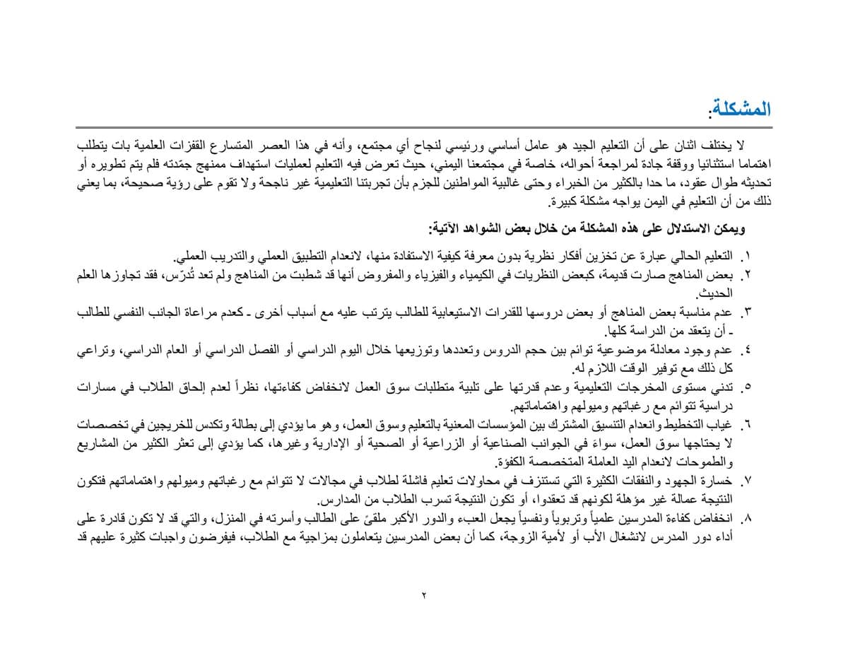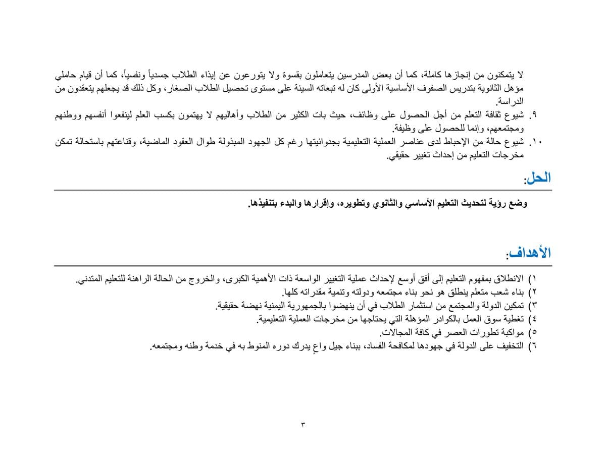 الجدير بالذكر أن الرؤية تضمنت تشيخصا دقيقا لوضع التعليم وحددت المشكلة وأسبابها وقدمت لها الحلول والمعالجات، إضافة إلى أنها وضعت تصورا لطبيعة المقررات والأهداف وكذلك طرق وأساليب التحديث المطلوب.