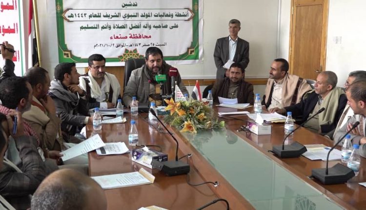 دشنت محافظة صنعاء، اليوم الأحد، أنشطة وفعاليات المولد النبوي الشريف للعام 1443 هجرية في لقاء موسع برئاسة محافظ المحافظة عبدالباسط الهادي.