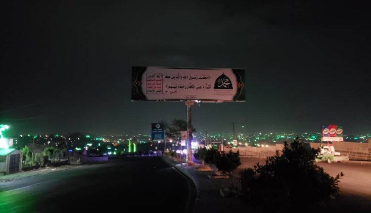 أما على الطرق الرئيسية وفي مراكز المديريات والقرى فتحكي اللوحات الضوئية واللافتات المعلقة فصولا من أسرار ميلاد النبوة وأجزاء من فضائل النهج النبوي وآيات من البهجة بهذه المناسبة الجليلة.