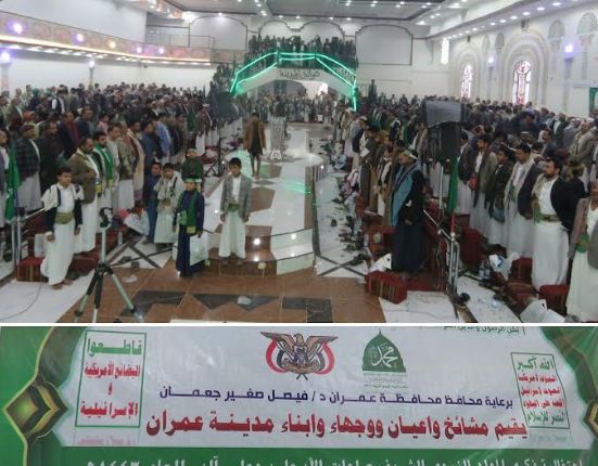 تخللت الفعالية، بحضور ومدير مديرية عمران نبيه أبو شوصاء ومسؤول الإعلام الأمني بشرطة المحافظة أحمد الضياني وعدد المشايخ والوجهاء والشخصيات الاجتماعية بمدينة عمران، فقرات إنشادية معبرة عن عظمة المناسبة.