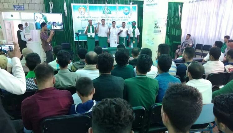 نظمت كلية طب الأسنان وملتقى الطالب الجامعي في جامعة الحديدة صباح اليوم الاربعاء فعالية خطابية إحتفاء بذكرى المولد النبوي الشريف على صاحبه أفضل الصلاة وأزكى التسليم.