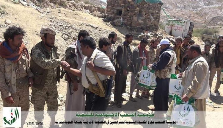 من جانبه، أوضح مدير المشاريع الإنسانية في مؤسسة الشعب محمد الجعدي، أن المؤسسة قدمت 500 كسوة شتوية للمرابطين في مديرية الجوبة بمناسبة مولد الرسول الأعظم، لافتا إلى أن توزيع الكسوة الشتوية على المرابطين، يُعد أحد المشاريع التي تنفذها المؤسسة للعام 2021م.