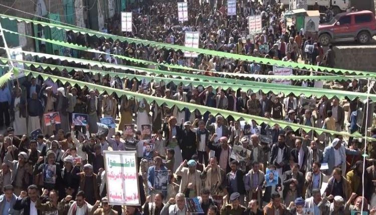 حشود هادرة في ريمة تحمل أمريكا مسؤولية التصعيد وتشديد الحصار