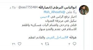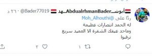 وغرد الحوثي مساء اليوم الثلاثاء (و ح د ك) وهو ما له دلالات وتكهنات عند الكثيرين عن حدث معين تصب جميعها عن حدث بارز ونجاح او نصر على احدى المسارات الاقتصادية او العسكرية او السياسية.