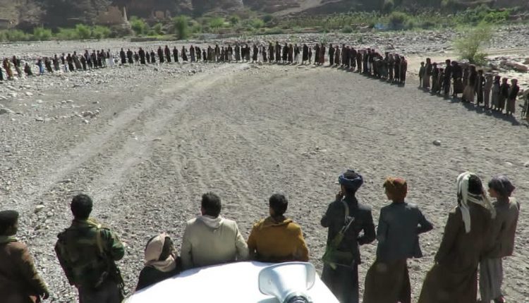 نظم أبناء مديرية حريب القراميش بمحافظة مأرب اليوم وقفة قبلية تنديدا بالتصعيد الأمريكي وجريمة إعدام الأسرى بالساحل الغربي.