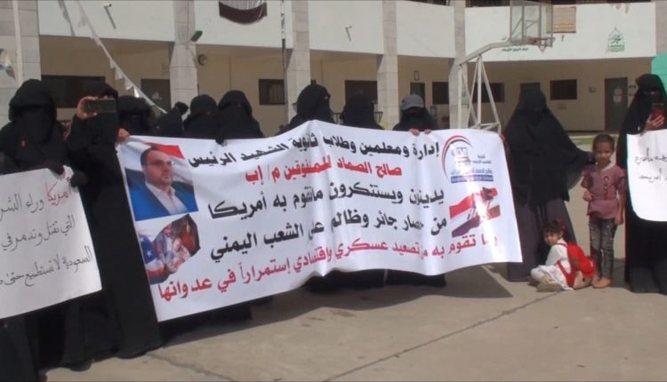 أقيمت في مديرية الظهار بمحافظة إب ، وقفة نسائية تنديدا بالتصعيد الامريكي الاقتصادي والعسكري والجريمة البشعة لمرتزقة العدوان في قتل الاسرى بالساحل الغربي.