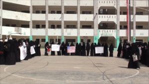 واكدت النسوة المشاركات في الوقفة أن التصعيد الامريكي دليل ان على مدى زيف ادعاءات امريكا بحرصها على السلام.