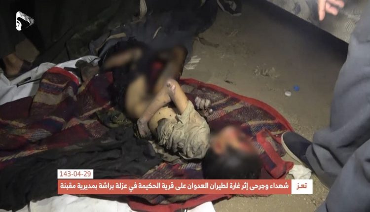 شاهد: صور أولية للمجزرة والجريمة البشعة التي ارتكبها تحالف العدوان في قرية الحكيمة في عزلة براشة بمديرية #مقبنة #تعز