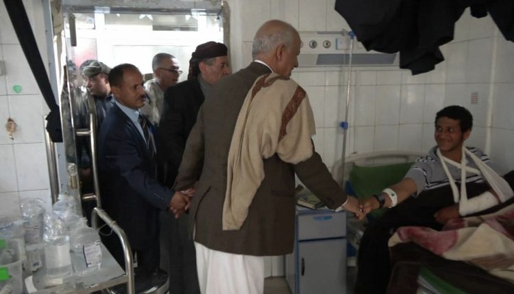 الجماعي والقيسي والبكير وصلاح يزورون الجرحى في مستشفى الثورة بإب
