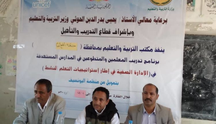وفي التدشين أكد مدير المديرية زيد الحاشي اهتمام وزارة التربية والتعليم ومكتبها بالمحافظة بتدريب المعلمين والإدارات المدرسية للارتقاء بالعملية التعليمية.