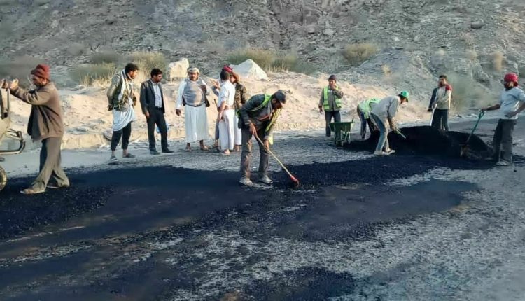 حيث اطلع المحافظ طعيمان، على أعمال السفلتة والترميم والصيانة في الخط الرئيسي الذي يربط بين محافظتي مأرب البيضاء.