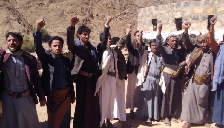 مأرب: قفة لأبناء منطقة حرة بمديرية حريب القراميش تنديداً بجرائم العدوان