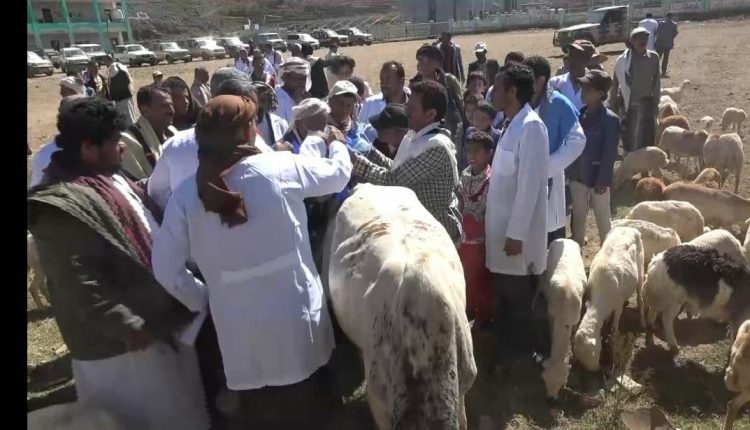 دشنت بمحافظة ريمة اليوم حملة التحصين البيطرية ضد أمراض الجدري وطاعون المجترات الصغيرة والكبيرة وجدري الأغنام والماعز ومرض الجلد العقدي التي ينفذها مكتب الزراعة والري بالمحافظة .تحت شعار “ثروتنا حضارتنا”