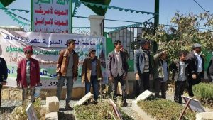 إلى ذلك نفذ طلاب وطالبات مجمع النور ومدارس محسن الصعر وعمران الأهلية والمنار الأهلية والإشراق الأهلية زيارات لروضة الشهداء بخط الأربعين تقدمها مدير مكتب التربية مسؤول الوحدة التربوية بمحافظة عمران زيد رطاس ومعه مدير تربية مديرية عمران قاسم الحجزي ونائبيه يحي الحوثي ويحي رسام ومدراء المدارس وعدد من القيادات التربوية.