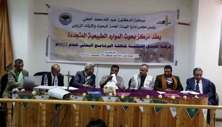نظم مركز الموارد الطبيعية المتجددة في الهيئة العامة للبحوث والإرشاد الزراعي بمحافظة ذمار اليوم ورشة فنية لمناقشة البرنامج البحثي للمركز للعام 2022م.